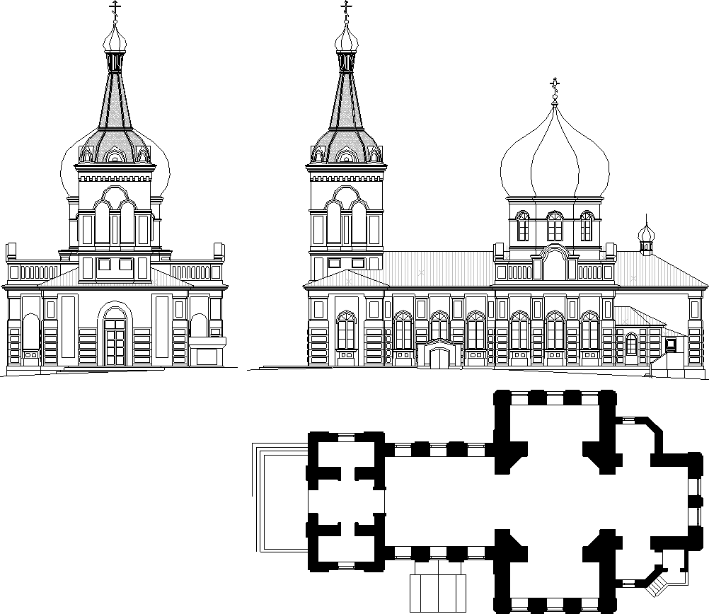 Planimetria este dictată de o navă amplă, cu absida altarului la est şi un pridvor, cu o clopotniţă la vest.