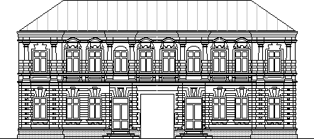 Este o clădire în două etaje, ridicată pe un plan rectangular, aliniat la linia roşie a străzii, cu un pasaj carosabil la parter. Faţada are o compoziţie cu simetrie axială, alcătuită dintr-un număr diferit de axe, la etaj – 10 goluri de ferestre, la parter şase goluri de ferestre, două ale golurilor de intrare şi pasajul carosabil, corespunzător la două axe superioare. Etajul este dotat cu porticuri din două coloane dorice, care se repete peste fiecare două axe. Paramentul parterului în bosaje orizontale. Arhitectura este în spiritul modernului.